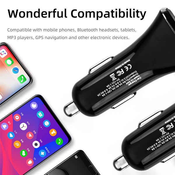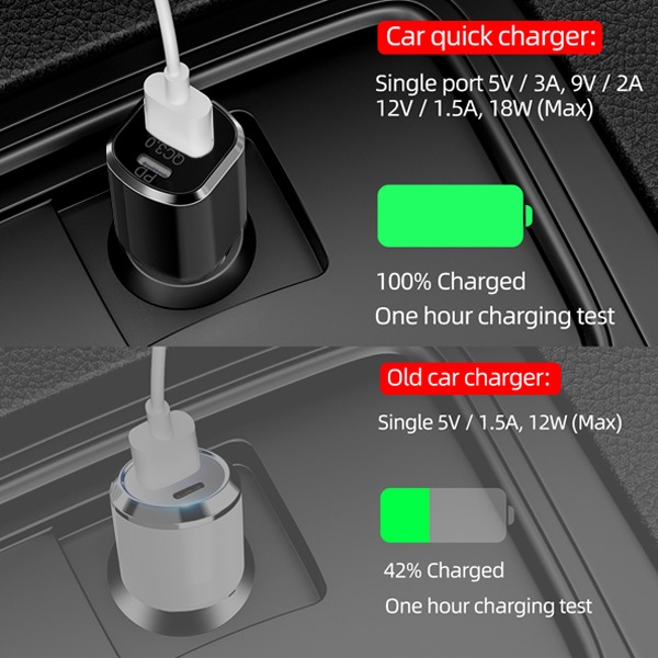 • This fast car charger can support 18W PD and 18W QC3.0 charge at max.